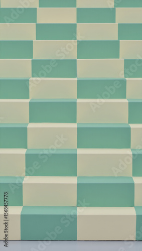 Abstract Pastel Green and Beige Checkerboard Staircase: Modern Minimalist Architecture Background