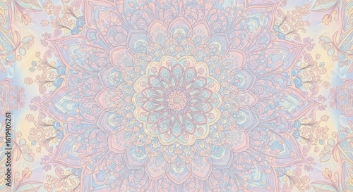 Abstract pastel kaleidoscope pattern with subtle geometric textures and faint rainbow hues creating a dreamy ethereal ambiance