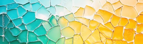 Abstract pastel teal and amber gradients create a broken mosaic effect with smooth transitions and defined edges