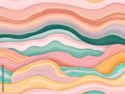 Abstract Pastel Wave Background: Colorful Layered Wavy Design