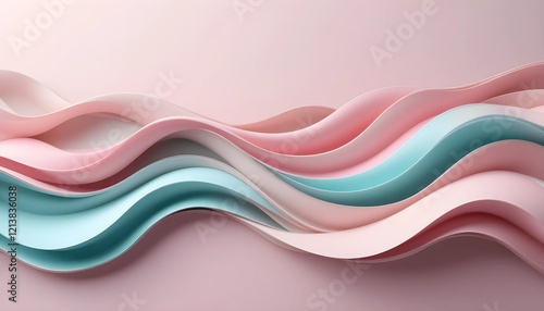 Abstract Pastel Waves A Serene Flow of Pink, Peach, and Blue Hues with Smooth Fluid Textures on a Minimalist Background