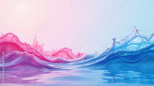 Abstract Pink and Blue Liquid Wave Splashes in a Serene and Dreamlike Composition