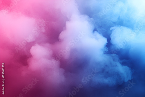 Abstract pink and blue smoke clouds swirl, creating a vibrant, ethereal texture.