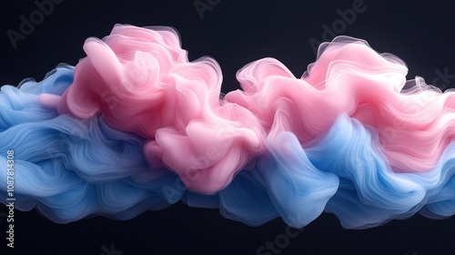 Abstract pink and blue swirls of paint against a black background.
