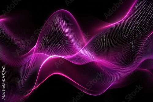 Abstract Pink and Purple Glowing Particle Wave on Black Background