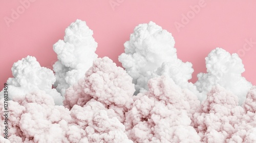 Abstract Pink and White Fluffy Clouds on Pink Background Dreamy and Calming Scene
