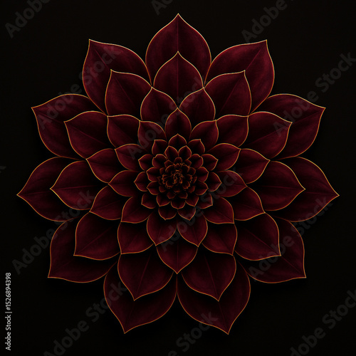 Abstract pink and white fractal flower mandala with red petals, a beautiful summer garden blossom