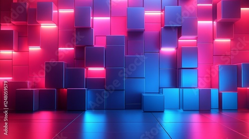 Abstract Pink Blue Neon Cubes 3D Digital Art Background