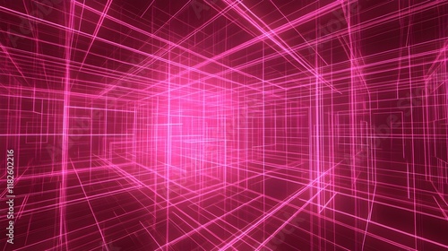 Abstract Pink Neon Glowing Lines Futuristic Corridor Background