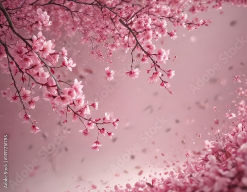 Abstract pink sakura petals swirl, ethereal background, image, backdrop, light