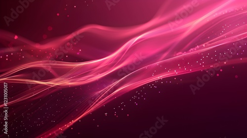 Abstract pink waves with particles create a dynamic, vibrant background.