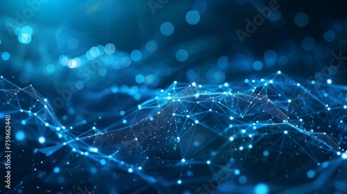 Abstract plexus blue geometry background. Digital technology network connection concept. 3D rendered illustration