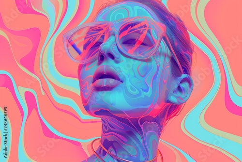 Abstract Portrait Collage - Contemporary Female Art, Vibrant, Dynamic, Expressive, Bold, and Colorful Fusion