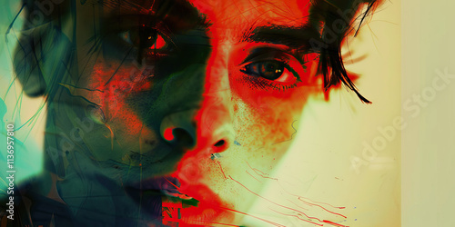 Abstract Portrait in Red and Green Hues