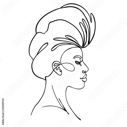 Abstract portrait of young African American woman. Continuous one line drawing isolated on white. Vector illustration in simple modern style.