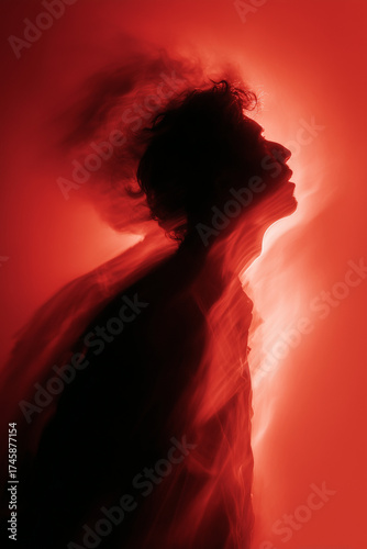 Abstract Portrait with Red Motion Blur and Silhouette Lighting