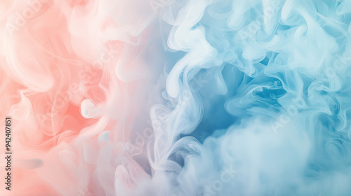 abstract powder blue and blush pink ink storm artwork, on a creamy ivory background