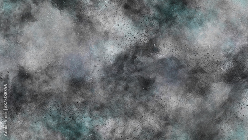 Abstract powder effect watercolor background texture. Blue and black background. Dust particles on black background. Glittering sparkling.