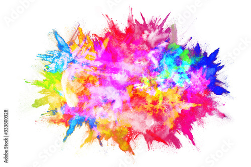 abstract powder splatted background. Colorful powder explosion on white background. Colored cloud. Colorful dust explode. Paint Holi.