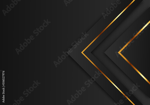 Abstract Premium Black Geometric Overlap Layers with Stripe Golden Line Luxury Style on Dark Background with Copy Space