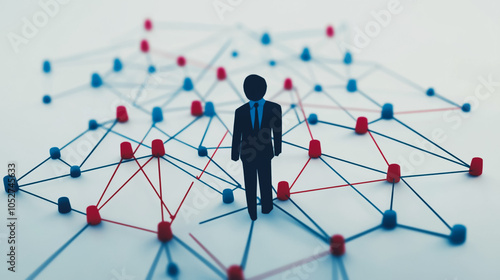 abstract professional business team people innovation connection of line from nail node to node on map background , networking concept