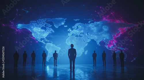 abstract professional business team people innovation connection of line from nail node to node on map background , networking concept