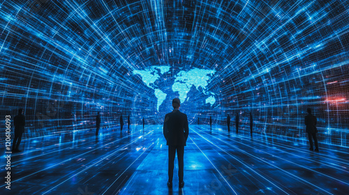 abstract professional business team people innovation connection of line from nail node to node on map background , networking concept