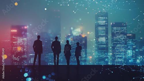 abstract professional business team people innovation connection of line from nail node to node on Smart Innovation city with connection cyber security network reciprocity , networking concept