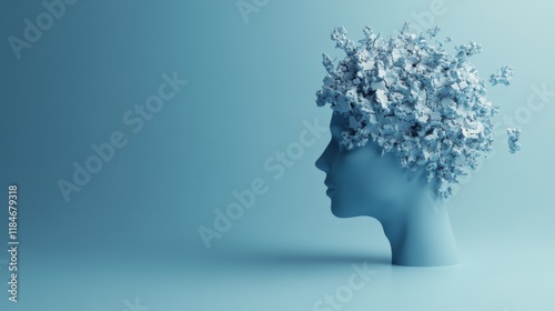 Abstract Profile Head: Fractured Mind in Pastel Blue