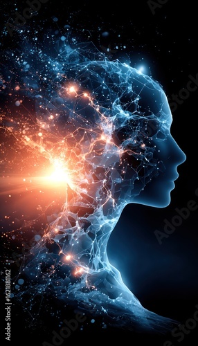 Abstract profile of a person, energy streams