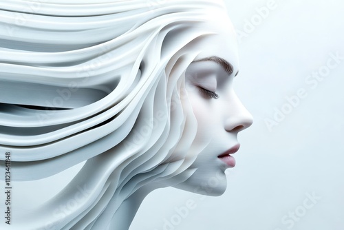Abstract profile of a serene woman with flowing hair, white isolated background.