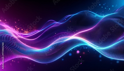 abstract purple and blue glowing wave with particles