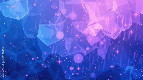 Abstract Purple and Blue Polygonal Network Background with Glowing Particles