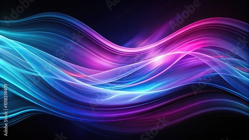 Abstract purple blue wavy background in darkness flowing