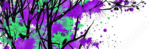 Abstract Purple Green Tree Birds Ink Splatter Art Print
