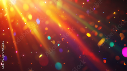Abstract rainbow holographic light rays with glowing bokeh on a dark background, perfect for futuristic designs, party visuals, and vibrant event backdrops