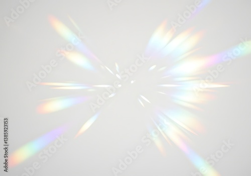 Abstract Rainbow Light Burst, Optical Effect, Prism Flare, Colorful Sunlight Rays on Gray Background.
