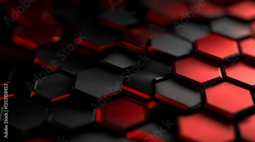 Abstract Red Black Hexagon Pattern Background.