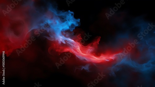 Abstract red and blue background with smoke. Generative Ai.