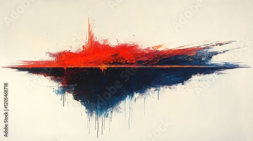 Abstract red and blue oil painting; expressive strokes.