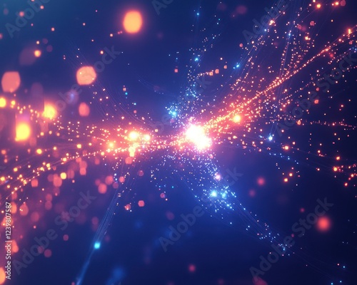 Abstract red and blue particles flow in dark background for science, tech, or marketing