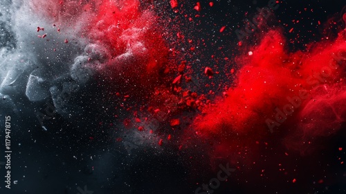 Abstract Red and White Powder Explosion on Black Background Dramatic Color Contrast Artistic Texture