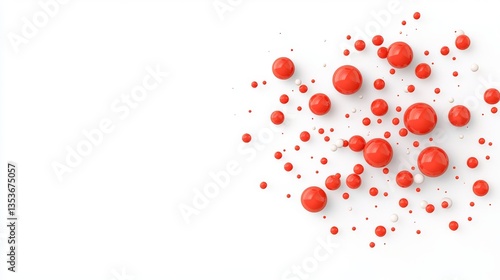 Abstract Red and White Spheres Scattered on White Background Modern Design Element