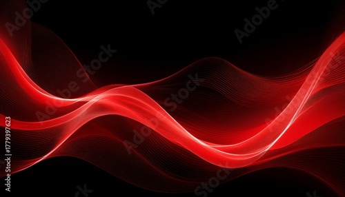 abstract red glowing wave lines on black background