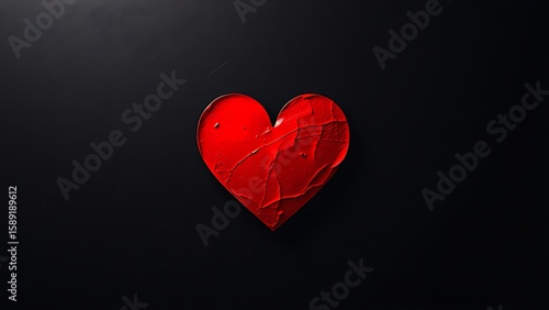 Abstract red heart symbol on textured dark background, evoking deep emotions with dramatic lighting.