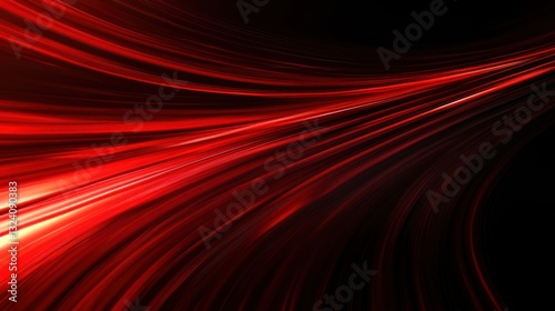 Abstract red light trails create a dynamic flow against a dark background, suggesting energy and movement in a digital art style