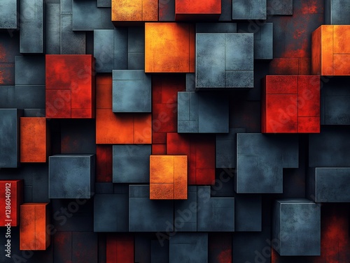 Abstract Red Orange Grey Cubes Textured Background. AI Generated