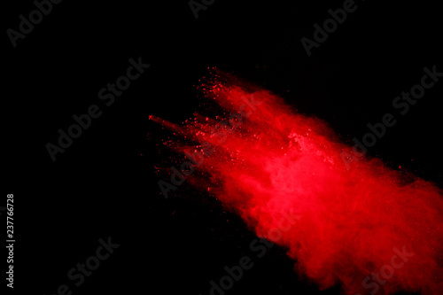 Abstract Red powder splatted background,Freeze motion of red powder exploding/throwing green dust.