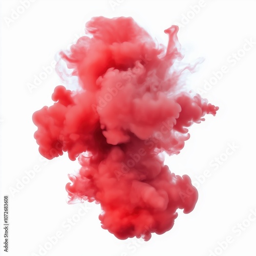 Abstract red smoke explosion. Pink cloud of steam, mist or gas isolated on white. Vapor, fog, fume effect. Creative, futuristic, vibrant, dynamic. Use for design, branding, background.