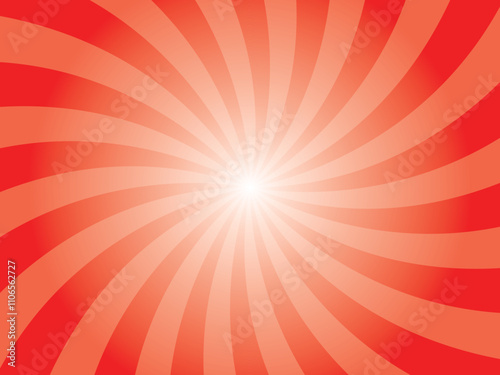 Abstract red sun ray vector background. Candy apple red swirl radial beam sunrise or sunset light retro design illustration. Light sunburst glowing background.